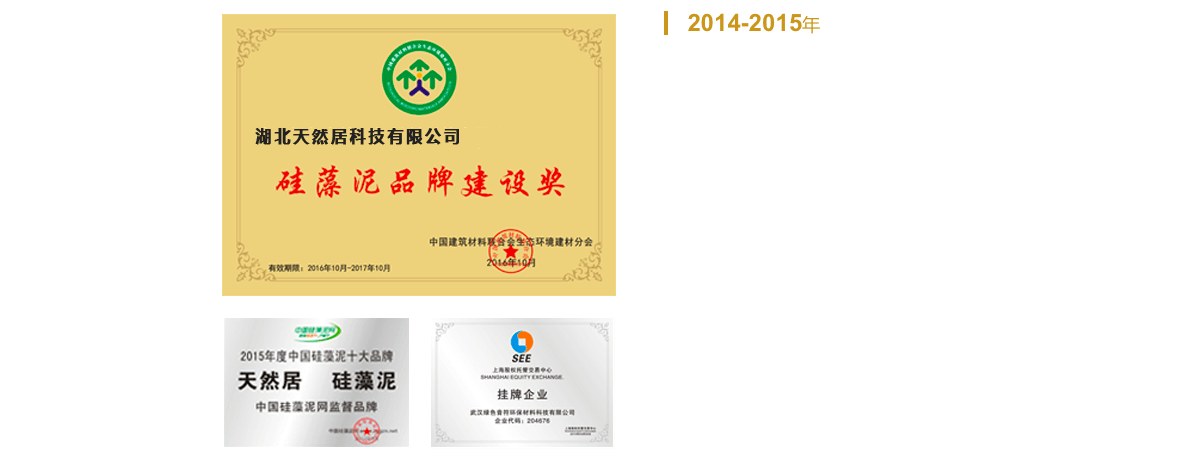 連續(xù)多年獲得《中國(guó)硅藻泥十大品牌》、《硅藻泥產(chǎn)品質(zhì)量信得過(guò)企業(yè)》、《最佳環(huán)保信得過(guò)產(chǎn)品質(zhì)量獎(jiǎng)》、《中國(guó)優(yōu)秀綠色環(huán)保產(chǎn)品》、《生態(tài)環(huán)保壁材推薦產(chǎn)品》、《中國(guó)科技創(chuàng)新優(yōu)秀企業(yè)》、《全國(guó)建材行業(yè)十佳綠色低碳示范單位》、《中國(guó)建筑材料聯(lián)合會(huì)生態(tài)環(huán)境建材分會(huì)硅藻泥專(zhuān)業(yè)技術(shù)委員會(huì)會(huì)員單位》、《硅藻泥行業(yè)標(biāo)準(zhǔn)的起草及修訂單位》、《高新技術(shù)企業(yè)》等眾多殊榮及多項(xiàng)權(quán)威專(zhuān)利,贏得了社會(huì)及同行的尊敬。