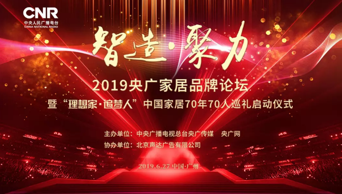 6月27日,智造•聚力——2019央廣家居品牌發(fā)展論壇暨“理想家•追夢(mèng)人”中國(guó)家居70年70人巡禮啟動(dòng)儀式在廣州市隆重舉行。