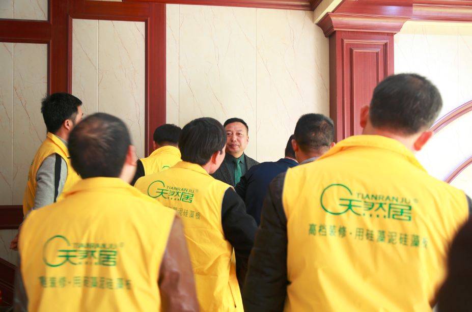 天然居總部市場營銷總經(jīng)理付東平、工程部總經(jīng)理潘倫飛攜設(shè)計部、市場部、培訓(xùn)部精英團隊出席,天然居硅藻板江西、浙江、福建、重慶、河北、 河南等優(yōu)秀代理商攜核心施工技術(shù)團隊參加,以“匠心工藝”為主題,盡情暢談匠人匠心, 共同開啟天然居“匠心智造”時代。