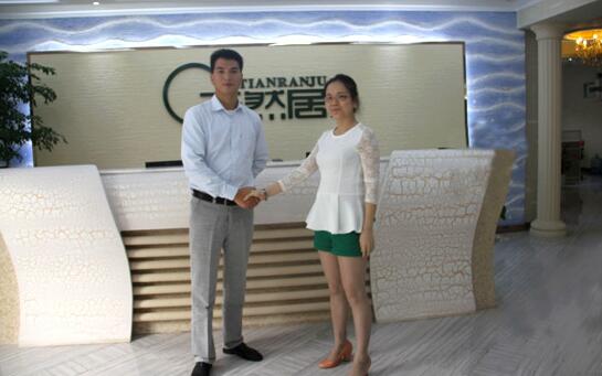 圖片資料:四川達(dá)州獨家代理商李及智女士與天然居市場部經(jīng)理胡總的溫馨留影