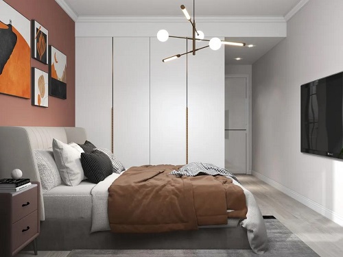 次臥一柜到頂?shù)囊鹿瘢?jiǎn)單線條裝飾,沒(méi)有過(guò)多華麗的裝飾,溫馨自在的客臥空間,更加舒適。