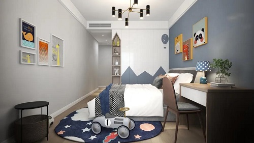 兒童房藍(lán)白相間的柜門(mén),搭配在原木系的柜體上,清新脫俗,沒(méi)有任何的壓抑感,讓孩子盡享生活的美好。